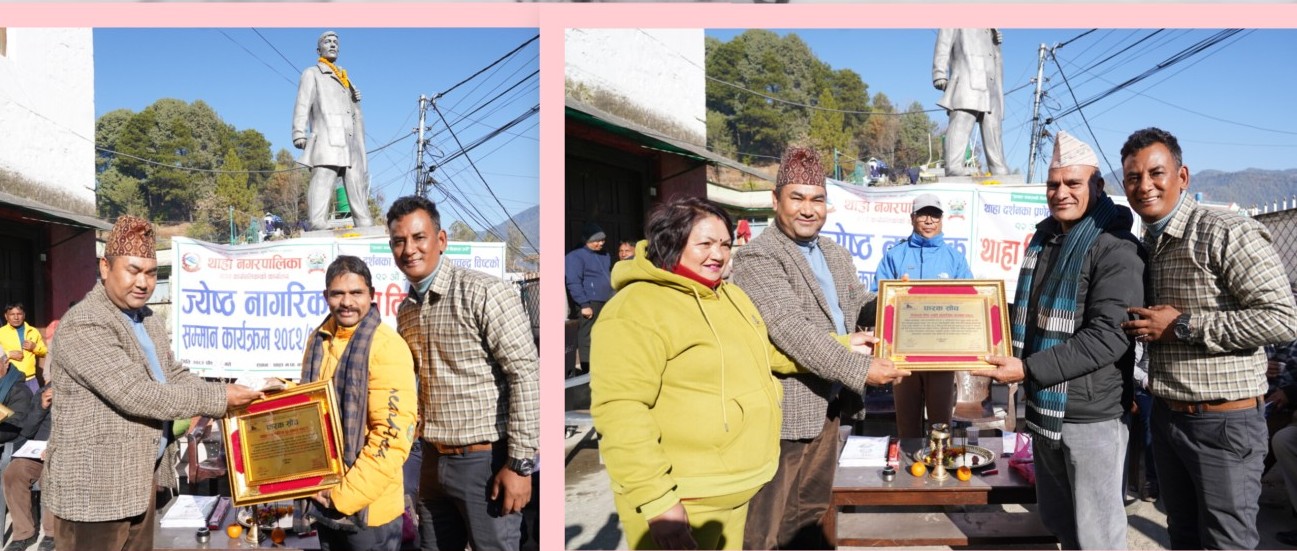 यसै अवसरमा थाहा नगरपालिकाको महिला, बालबालिका तथा ज्येष्ठ नागरिक शाखाको आयोजनामा वडा नं. ३ र ४ का ३० जना ज्येष्ठ नागरिकलाई सम्मान गरिएको थियो। थाहा नगरपालिकाको वार्षिक स्वीकृत कार्यक्रमअनुसार वडा ज्येष्ठ नागरिक समन्वय समितिको सिफारिसका आधारमा वडा नं. ३ का १५ जना र वडा नं. ४ का १५ जना ज्येष्ठ नागरिकलाई न्यानो ब्ल्याङ्केट, गल्बन्दी, थरमस तथा बेतको लौरो प्रदान गरिएको हो।